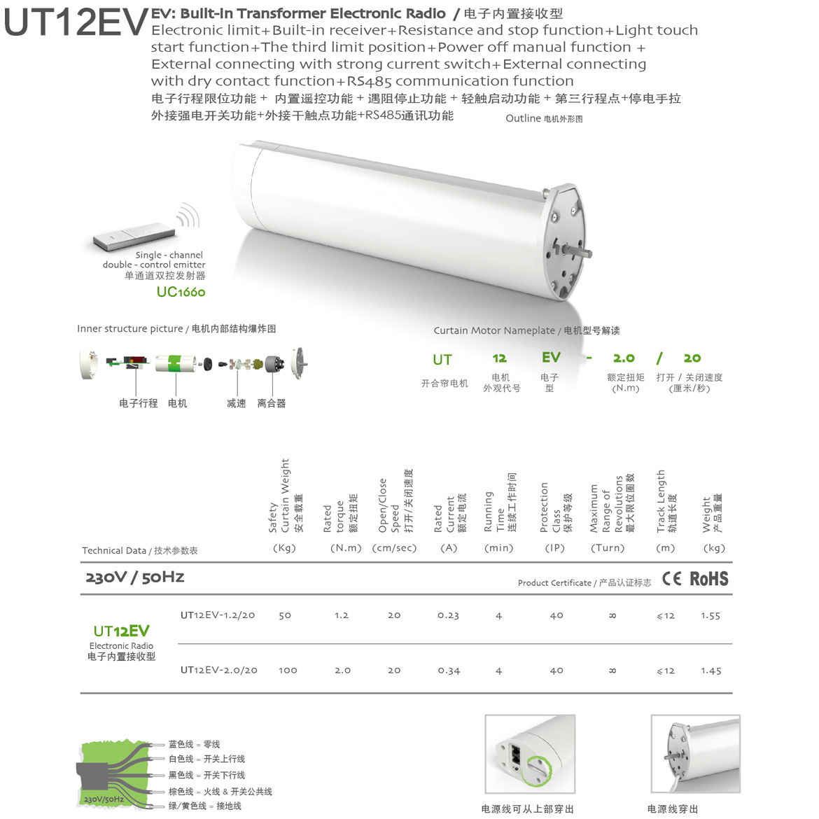 電子記憶限位功能+內置遙控功能+遇阻停止功能+輕觸啟動功能+停電手拉功能+第三行程點功能+可外接干觸點開關功能+可外接強電開關功能+插卡取電功能+RS485功能