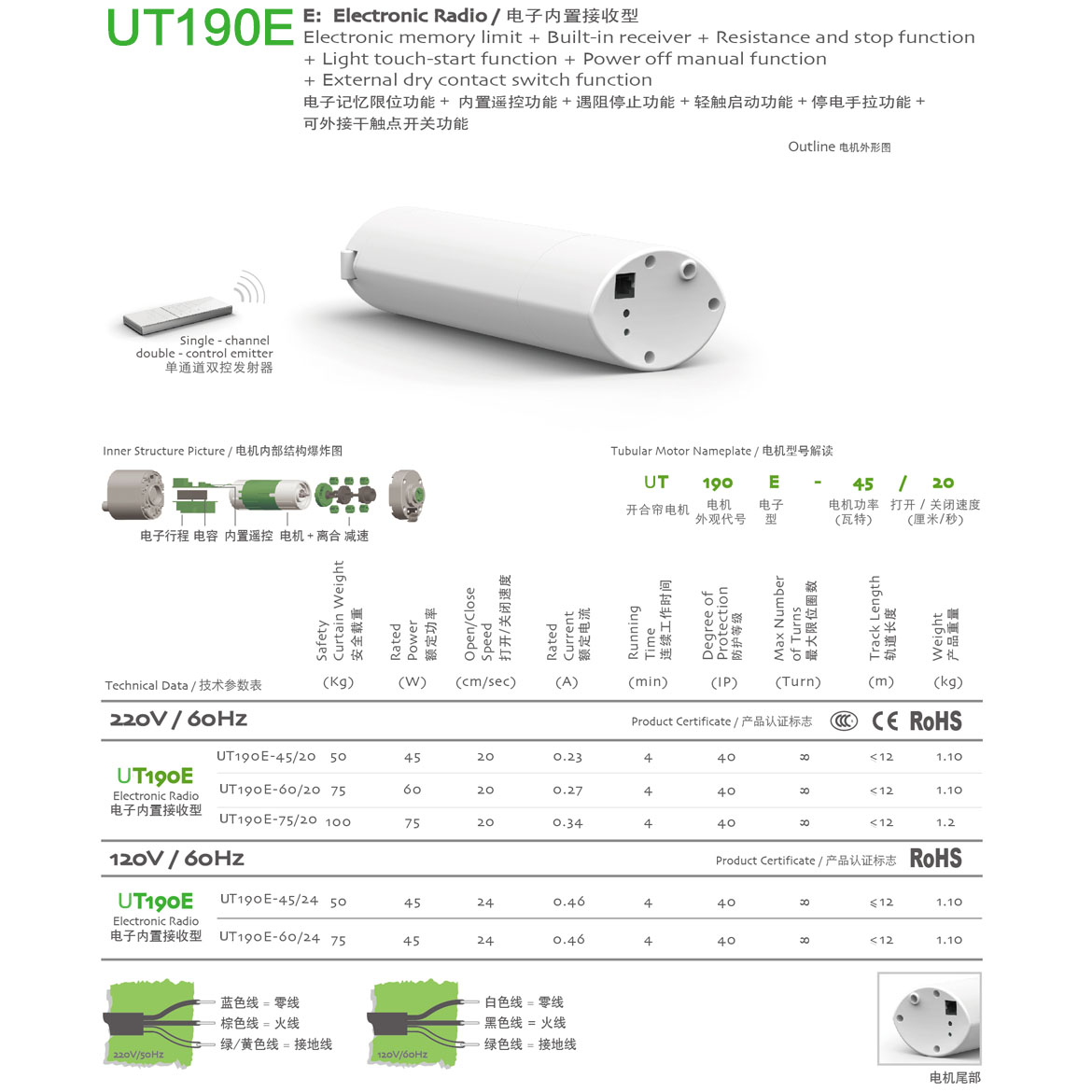 電子記憶限位功能+內置遙控功能+遇阻停止功能+輕觸啟動功能+停電手拉功能+第三行程點功能+可外接干觸點開關功能
