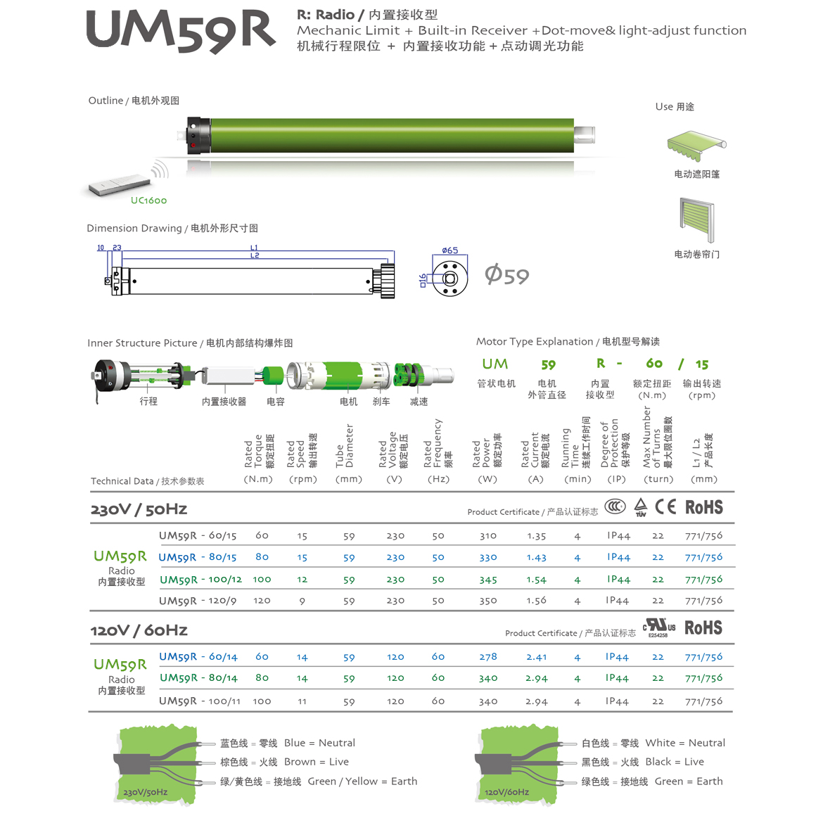R:Radio/內(nèi)置接收型 機械行程限位+內(nèi)置接收器+點動調(diào)光功能